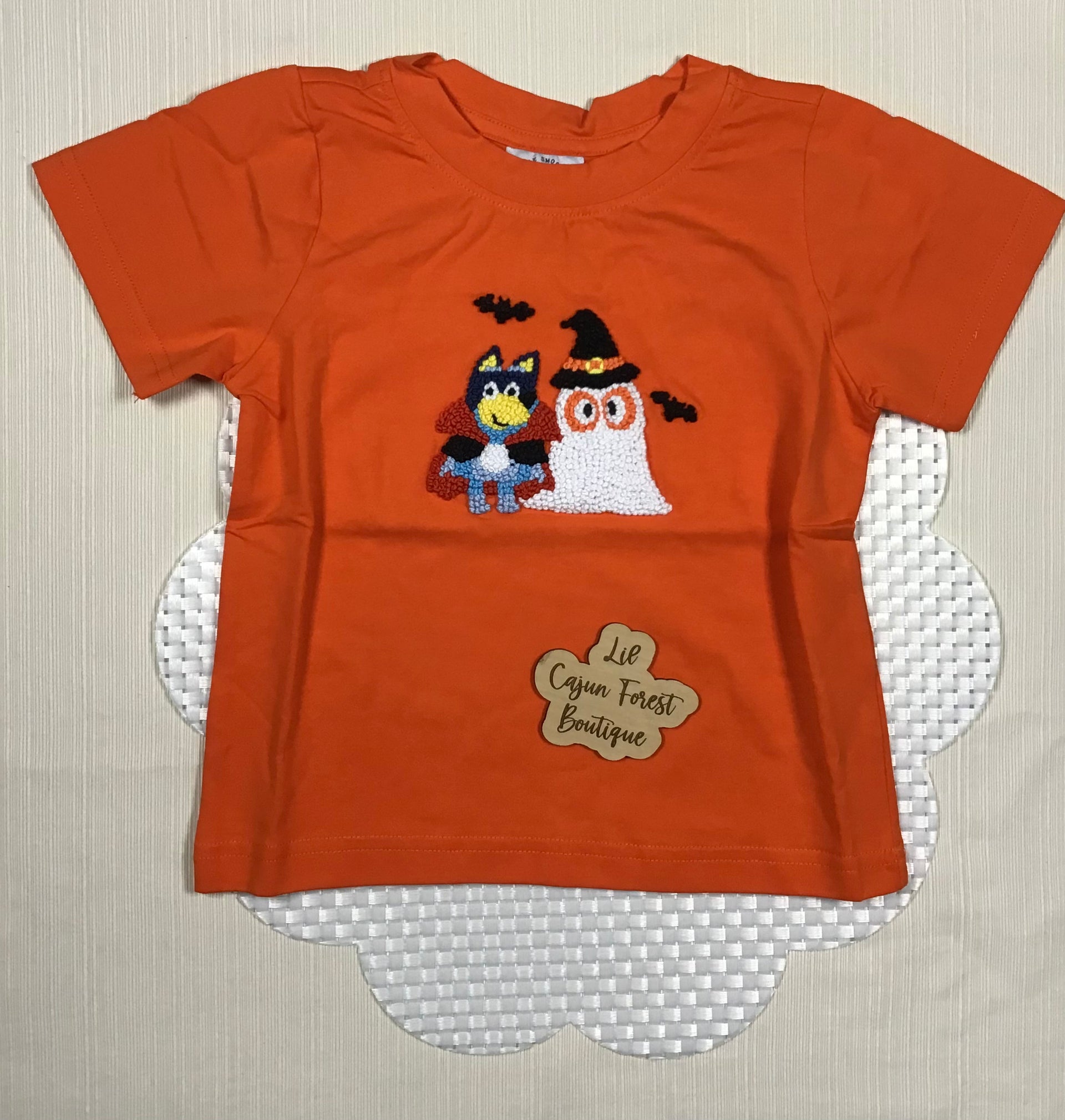 Get ready for spooky season with our BLUE Dog French knkt Halloween shirt from Cajun Forest Boutique! Made with high-quality materials, this shirt features a cute design inspired by the popular show. Perfect for your little ones to wear on Halloween night AND Ready To Ship!