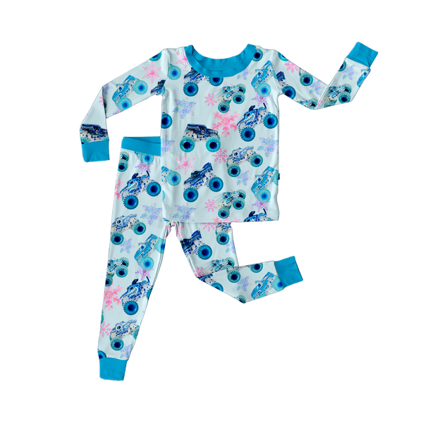 Get ready to jam out in style with our Exclusive Design Winter Jams Long Sleeve Bamboo Pajamas! Made with soft, eco-friendly bamboo fabric, these pajamas feature an exclusive winter monster truck design that will have you dreaming of adventure all night long. Get yours now to add a playful touch to your bedtime routine!