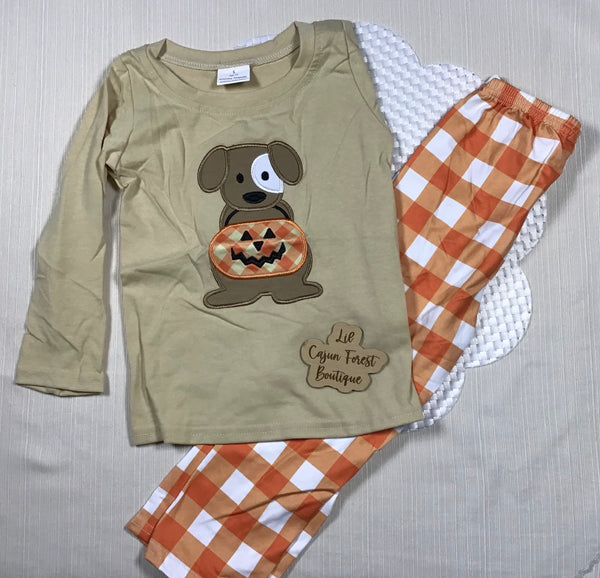 Get your little one ready for Halloween with our TRICK OR TREAT PUP SET! This adorable puppy-themed set from Lil Cajun Forest boutique is perfect for after long trick or treating. Ready to ship TODAY!!