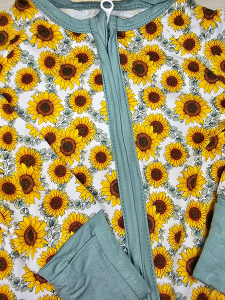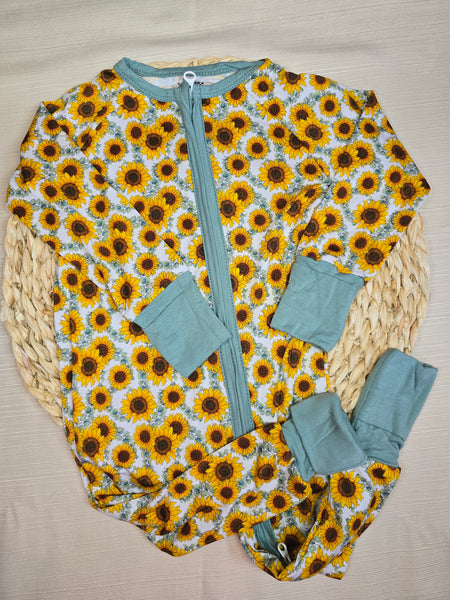 Introducing the Sunflower Bamboo Zippy! Feel the sunshine with our eco-friendly bamboo fabric. With its convenient zipper, this zippy will keep you stylish and organized.