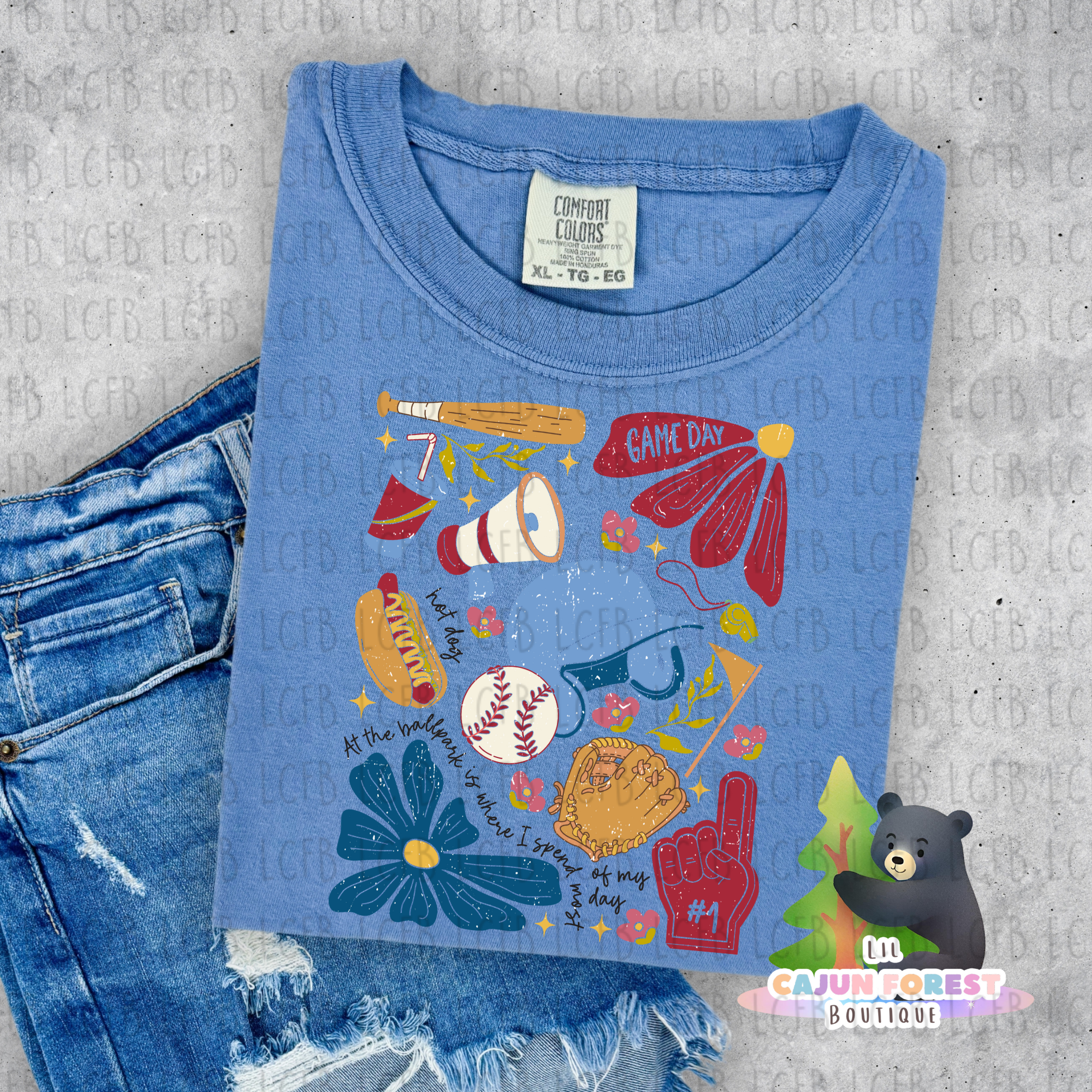 At the Ballpark Baseball Collage Graphic T-Shirt